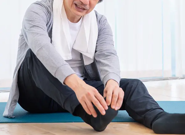 柔軟性を高めるセルフケアの方法としては足裏(特に土踏まず)をご自身でマッサージしたり、ふくらはぎの筋肉をストレッチすることが効果的です。アキレス腱を伸ばすストレッチを行うとふくらはぎの筋肉にもストレッチがかかります。